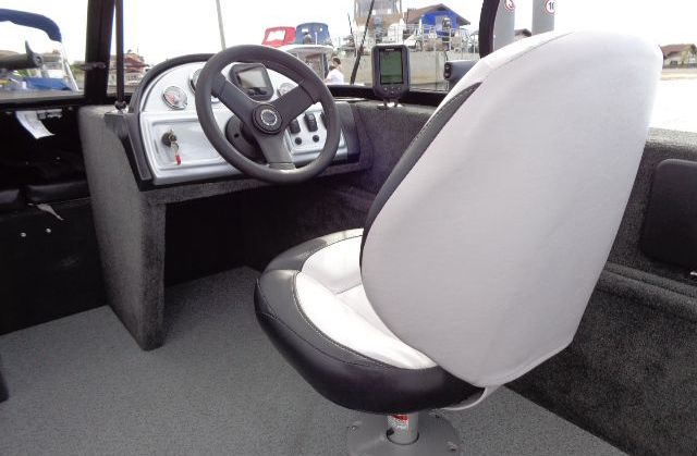 Посадка водителя на удобном мягком кресле невысока, и хороший обзор сквозь фирменное каленое стекло Taylor Made в алюминиевой раме обеспечен за счет столь же невысокой приборной консоли. Размеры панели управления ограничены — размещаются только необходимые приборы контроля, а навигационную электронику придется выносить отдельно на кронштейн. По бортам размещены багажные отсеки для длинномеров, под крышками с замками. Еще одна замечательная особенность — задний диван-трансформер, который можно превратить в ровную площадку на корме.